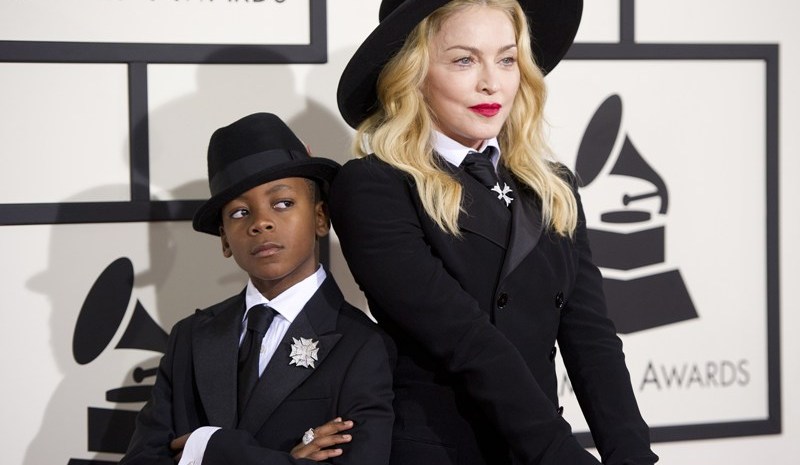 Madonna y su hijo David Banda, quien ya juega para el Benfica, en la entrega de los 56 Grammy. Crédito: ROBYN BECK | AFP/Getty Images