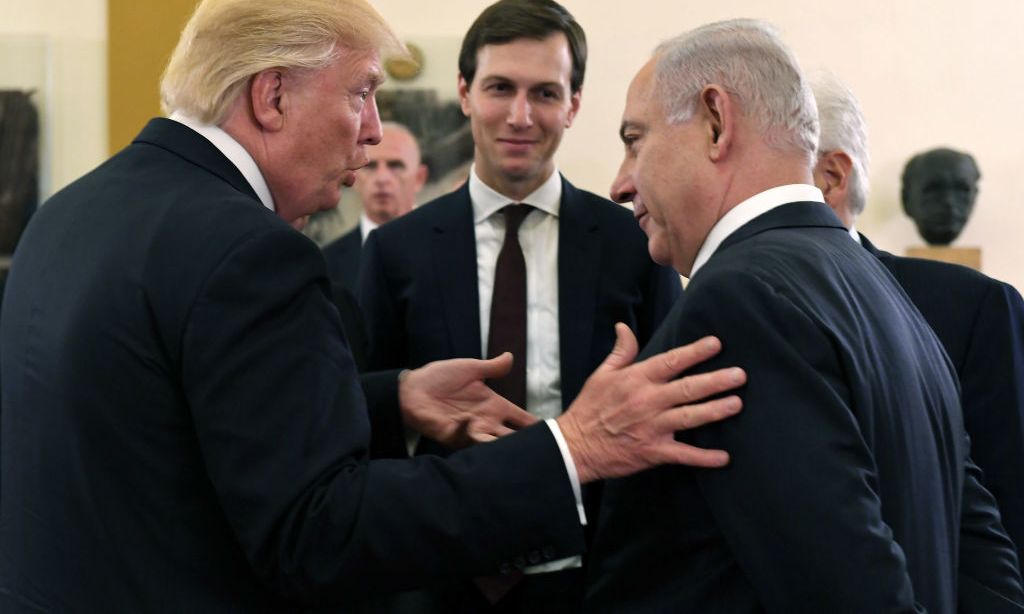 Trump (i), Kushner (c) y Netanyahu (d) se reunen en Jerusalen. Crédito: Getty Images