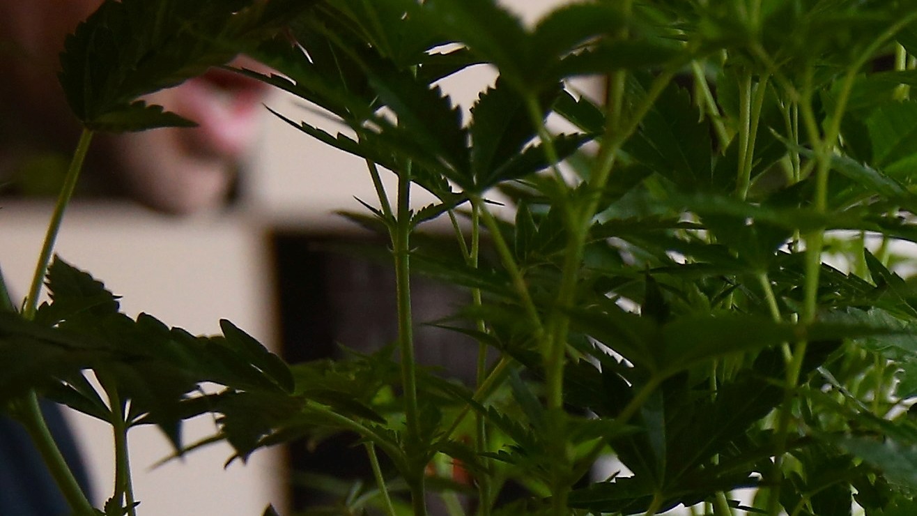 Una planta de cannabis en CannaSearch, la primera feria de empleo de cannabis de Colorado. Crédito: Doug Pensinger | Getty Images