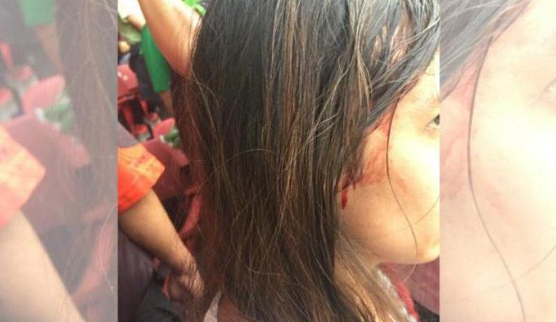 Hay que ser respetuosos en los estadios.En el festejo del gol,a esta chica le cayó una lata y la descalabraron.No se vale! @miseleccionmx pic.twitter.com/oS3kWn4uoU