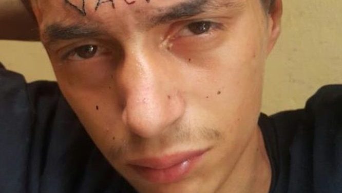 El joven, de 17 años, fue atado en una silla de plástico en una pensión que había sido alquilada por el tatuador de Maycon Wesley Carvalho dos Reis, 27 años, le tatuaron la frente y le cortaron el pelo, según contó el menor a la Policía.