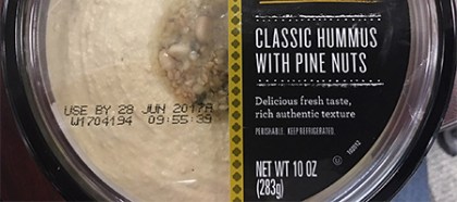 "Marketside Classic Hummus with Pine Nuts" es uno de los tres productos potencialmente contaminados. Crédito: cortesía de la Administración de Alimentos y Medicamentos (FDA, por sus siglas en inglés)