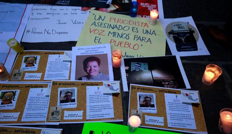 Deloire hizo el listado de siete periodistas asesinados en México desde el 1 de enero y precisó que en cuatro de los casos no hay “ninguna duda” de que su muerte tiene que ver con el ejercicio de su profesión: Javier Váldez Cárdenas, Maximino Rodríguez Palacios, Cecilio Pineda Birto y Miroslava Breach Veducea.