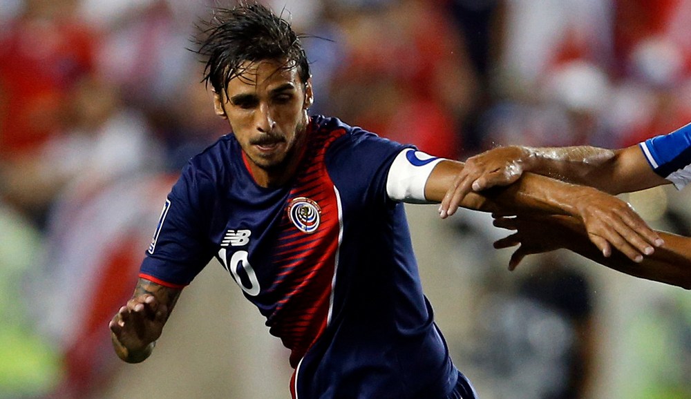 CDA703. BOGOTÁ (COLOMBIA), 11/07/2017.- Fotografía de archivo del 7 de julio de 2017 de jugador Bryan Ruiz de Costa Rica durante un partido de la Copa de Oro entre Honduras y Costa Rica en el estadio Red Bull arena en Harrison (EE.UU.). Bryan Ruiz, aquel flaco y hábil zurdo que partió con muchos sueños al fútbol europeo hace 11 años, se convirtió este martes, durante el compromiso ante Canadá por la Copa Oro, en el octavo futbolista que alcanza los 100 partidos con la selección de Costa Rica. EFE/Adam Hunger Crédito: EFE