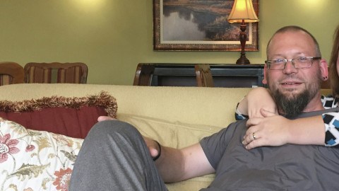 David and Elizabeth Weinlick, posan en para una sesión de fotos en su casa, en Minnesota. Crédito: AP Photo/Kyle Potter)