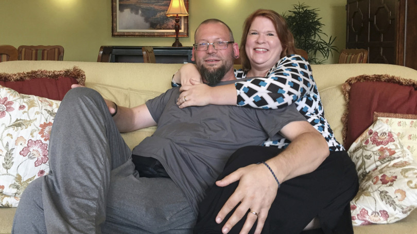 David and Elizabeth Weinlick, posan en para una sesión de fotos en su casa, en Minnesota. Crédito: AP Photo/Kyle Potter)