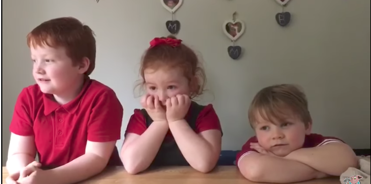 Estos tres hermanos llevaban tiempo esperando un nuevo hermanito.  Crédito: Captura de pantalla.