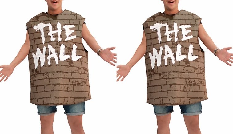 Esta semana, Party City la mega tienda de fiestas y disfraces le siguió el paso añadiendo un traje inspirado en el “Muro Fronterizo”. El polémico atuendo, que de inmediato causó estupor en los visitantes del portal de la reconocida tienda está compuesto por una envoltura que simula una pared de ladrillo con las palabras “Muro” en toda la mitad del pecho. La insigna está escrito en letra de graffiti.