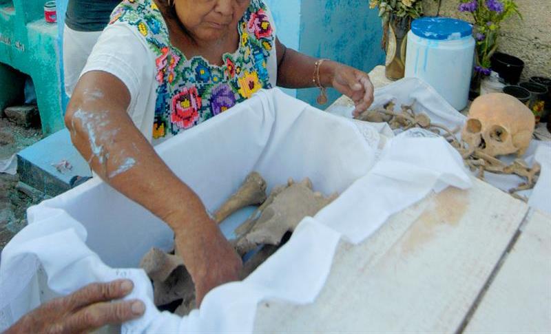MÉXICO – Todos los años, como preparativo para el Día de Muertos, los habitantes de la comunidad de Pomuch, en el sureste de México, extraen los huesos de los nichos y los limpian con cuidado; una tradición que es vista como un gesto de “amor” para estar más cerca de los familiares fallecidos.