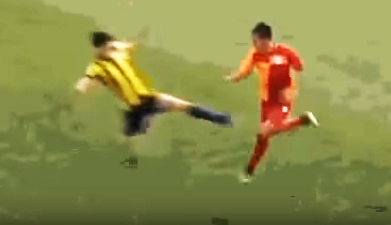 Un escape por la banda izquierda de un jugador del Galatasaray fue cortado abruptamente por un rival del Fenerbahce con una patada voladora a la rodilla, y de milagro no lo lesionó de gravedad.