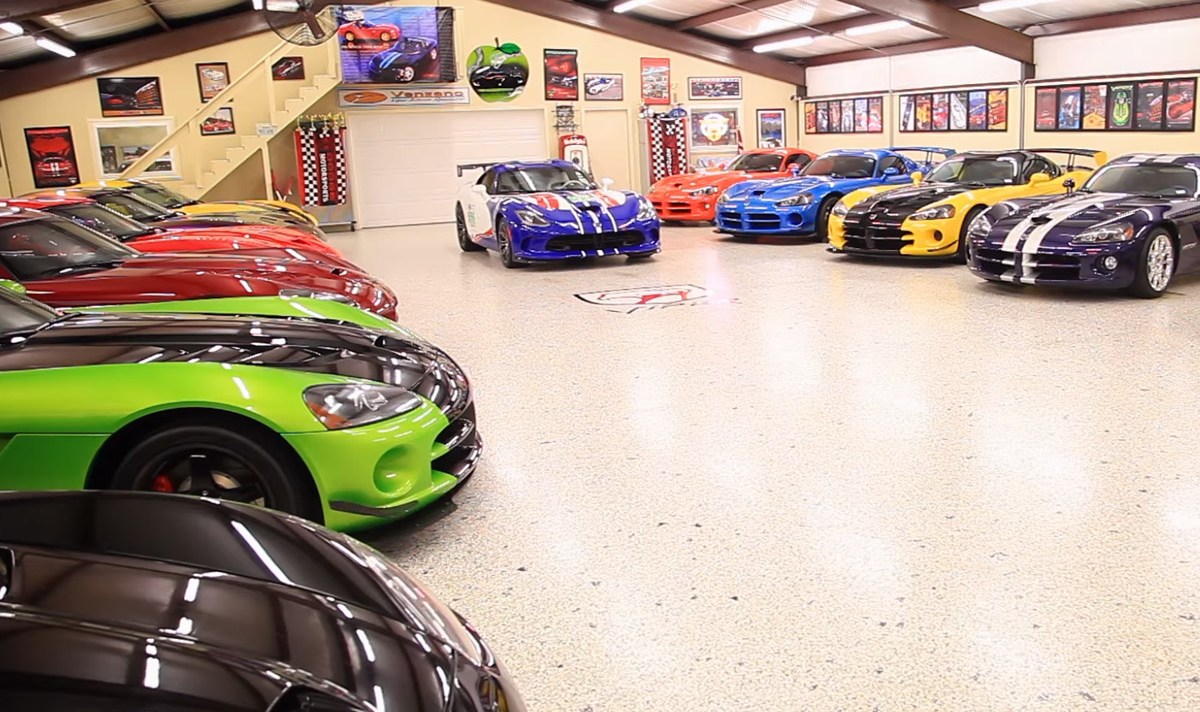 Una de las ediciones más preciadas de la colección de la pareja es un impresionante Viper dorado, el último en salir de la línea de producción en 2010, antes de que la empresa entrara en quiebra. Cabe mencionar que alojar una colección de este tamaño, presenta a los residentes del este de Texas, algunos desafíos únicos. Cada automóvil se limpia después de que se conduce, lo que puede llevar un día completo.
