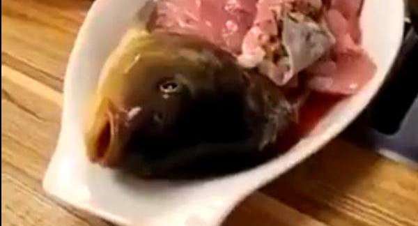 En la secuencia de menos de dos minutos se observan varios comensales en un restaurante consumiendo mariscos y pescados frescos, tanto que muchos de ellos son desfiletados o escaldados vivos, y aún reaccionan abriendo la boca o retorciéndose en los platos.