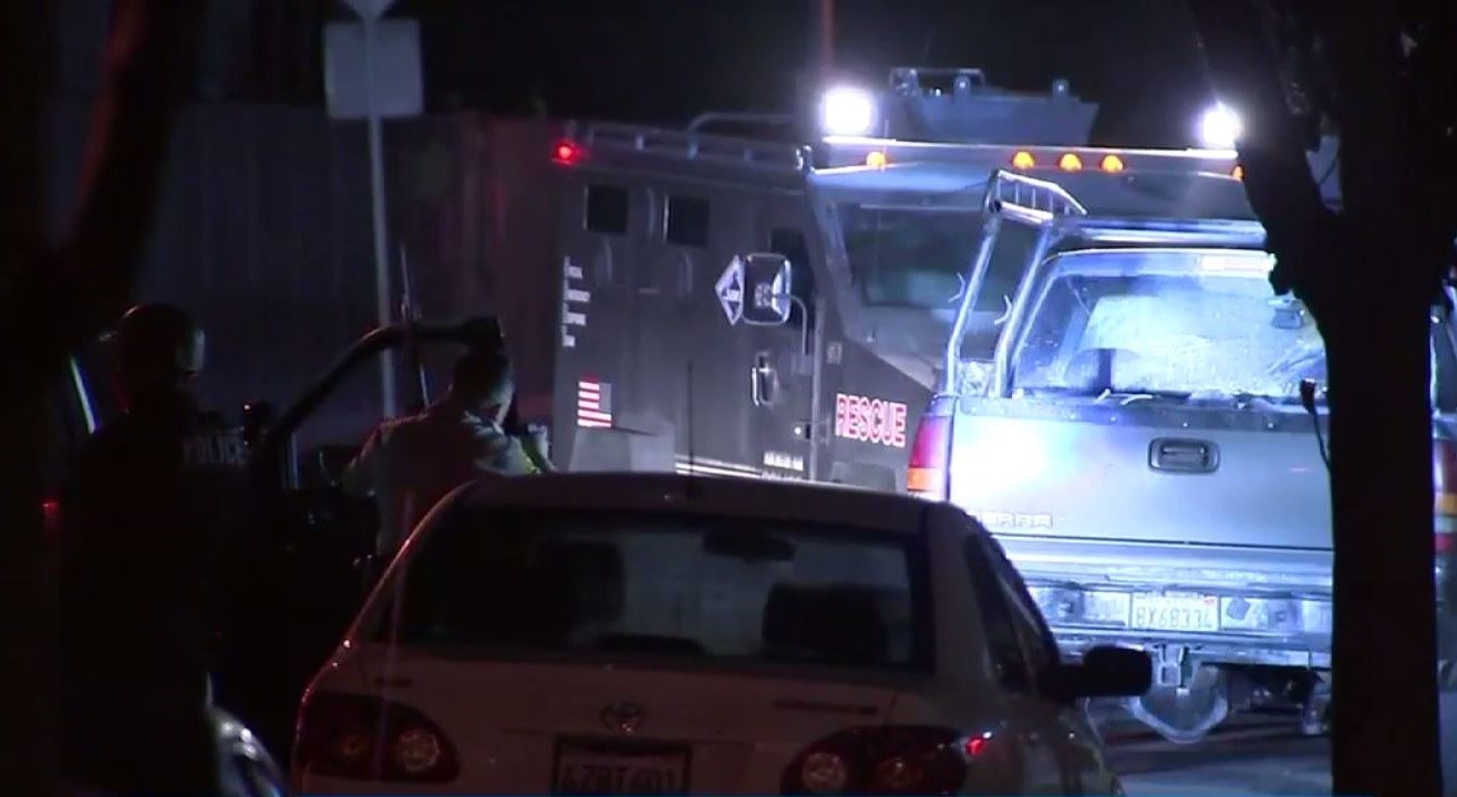 Inicialmente, la policía disparó irritantes con fin de impulsar al sospechoso a salir. Crédito: captura de pantalla de abc7
