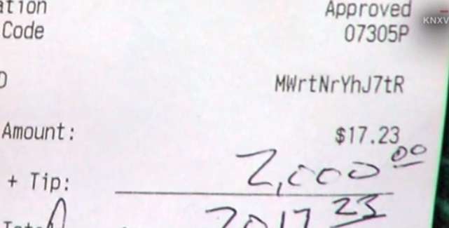 El cliente que pagó una cuenta de $17 dólares y dejó $2,000 de propina