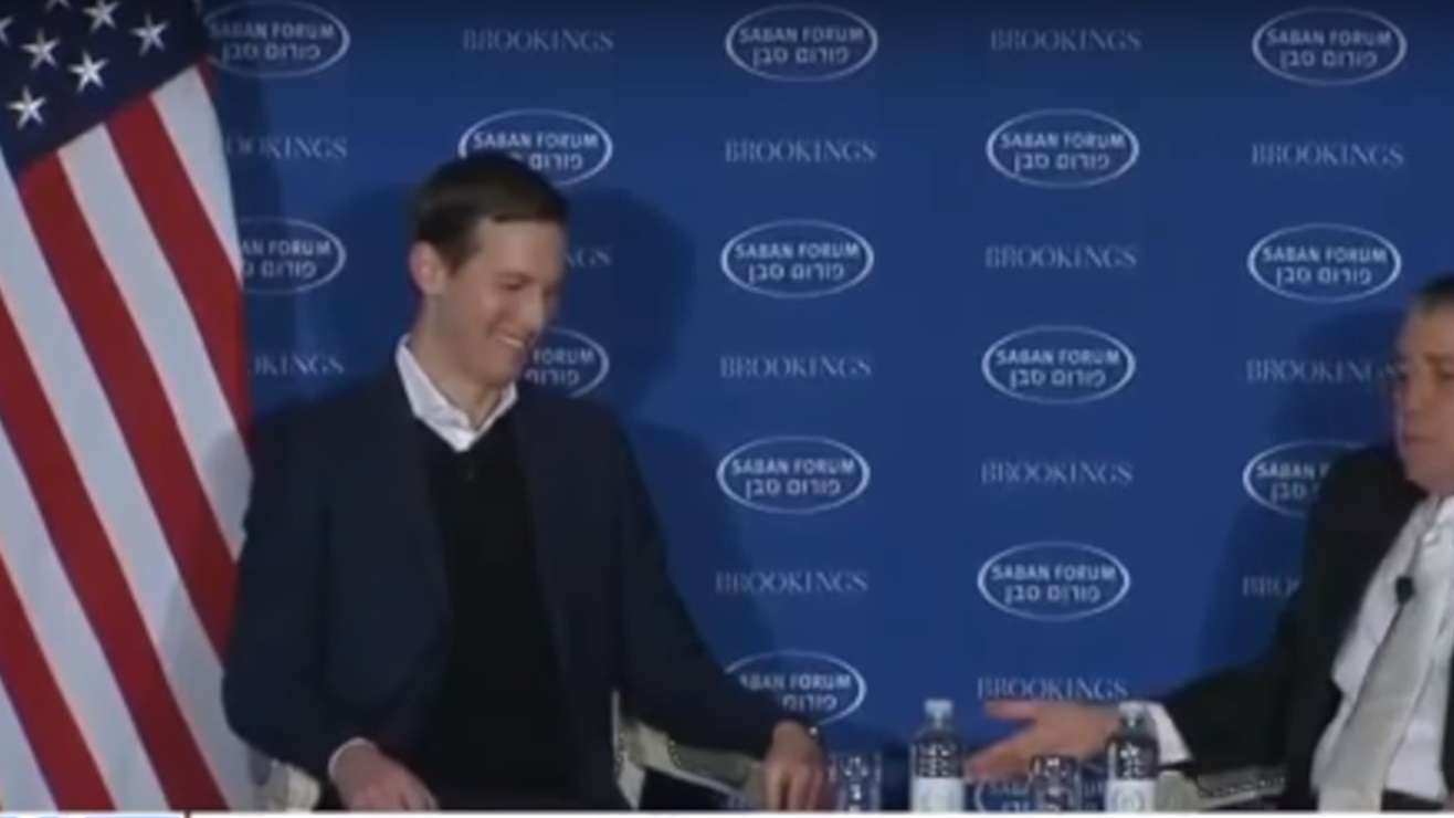 Sobre el conflicto Israel-Palestina, Kushner hizo una aparición en el foro de Haim Saban -uno de los dueños de Univision- como parte de su papel como negociador principal de Estados Unidos para la paz, un trabajo para el cual sus críticos indican que no tiene las calificaciones ni la aptitud.