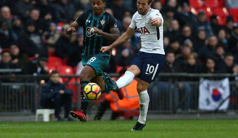 Harry Kane (der.) anotó tres goles contra Southampton. EFE Crédito: EFE