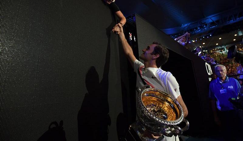 El suizo Roger Federer agradece a su esposa Mirka tras ganar el título del Abierto de Australia. (Foto: EFE/EPA/TRACEY NEARMY) Crédito: TRACEY NEARMY | EFE/EPA