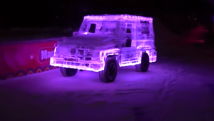 Un habitante de la comunidad siberiana de Novosibirsk, en Rusia, creó una reproducción del Mercedes Benz G Class completamente de hielo, pero funcional.