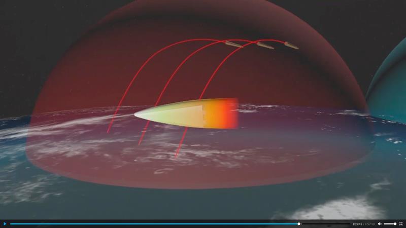 La descripción indica que el sistema puede realizar maniobras laterales y verticales “de varios miles de kilómetros”, lo que lo hace también invulnerable a todos los sistemas de defensa antimisiles, según Putin.