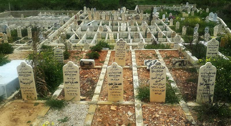 El camposanto para sirios de esta localidad, situada en la región montañosa de Iqlim Jarrub, es uno de los escasos cementerios legales de este tipo que hay en el Líbano y fue creado por la ONG Asociación Social.