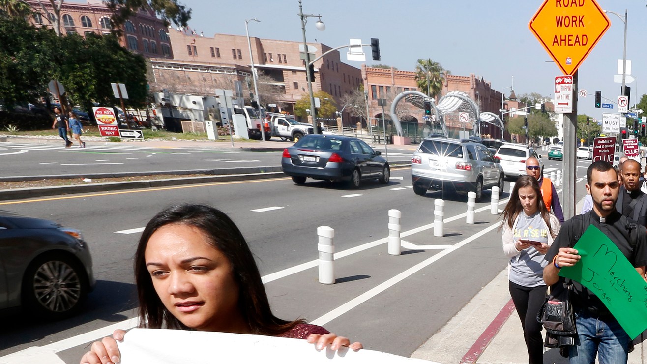 Hernández fue parte de una marcha que salió de la placita Olvera hasta el edificio federal del centro de Los Ángeles, organizada por 52 pastores que vinieron de diversas iglesias metodistas de los estados del oeste de país.