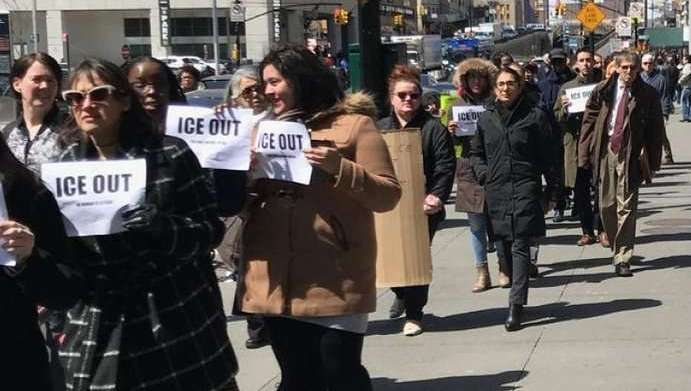 Cuando se supo de su arresto, cientos de abogados de Legal Aid y The Bronx Defenders abandonaron el Salón de Justicia del Condado de El Bronx en la calle 161 Este y Morris Avenue para exigir a los agentes de ICE no ejecutar órdenes en cortes de Nueva York.