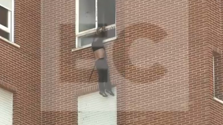 En imágenes que circulan en medios y en redes sociales se ve al sospechoso, de 46 años, poco antes de caer del piso 8 del edificio ubicado en el número 6 de la calle Julián de Arrese.