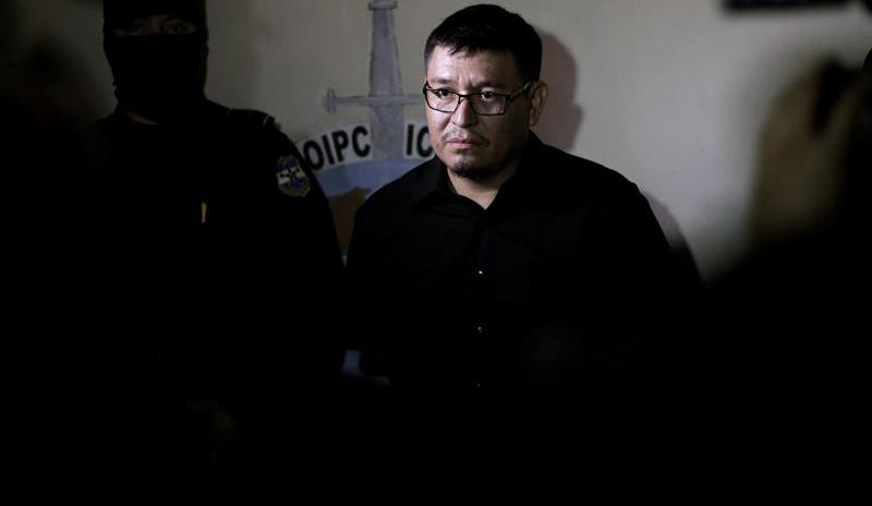 Tras su detención, Mario Huezo fue presentado a los medios de comunicación en la Dirección Central de Investigaciones de la PNC, antes de pasar a disposición judicial.