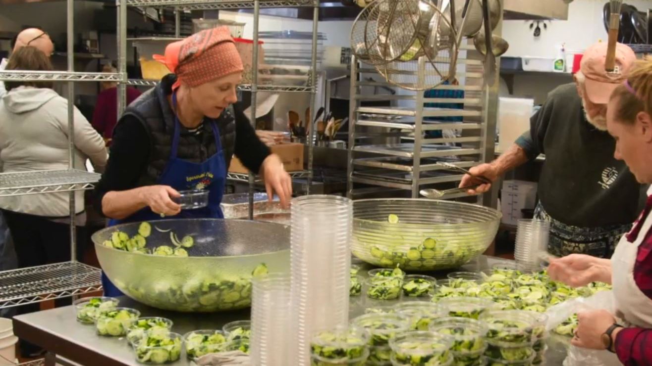 Empleados preparan las comidas que serán entregadas a los pacientes. Crédito: Captura de Youtube | Ceres Community Project