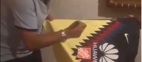 A través de un video publicado en redes sociales, se observa al “Cuau” firmando el jersey de las Águilas y le dedica unas palabras a López Obrador, al que le pide, entre otras cosas, que se convierta en seguidor del conjunto azulcrema.