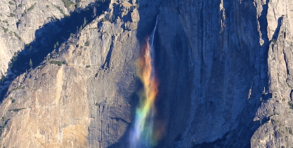Increíbles imágenes de Yosemite se han podido ver gracias a la unión de elmentos naturales como el viento y los primeros rayos de sol de la mañana, que reflejaron sobre una cascada de agua, creando un intenso arco iris. Con el ligero viento soplando sobre la zona, el agua se difuminaba, repartiendo los colores en el aire.