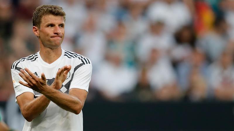 Thomas Mueller reacciona, tras fallar una oportunidad clara de gol Crédito: EFE