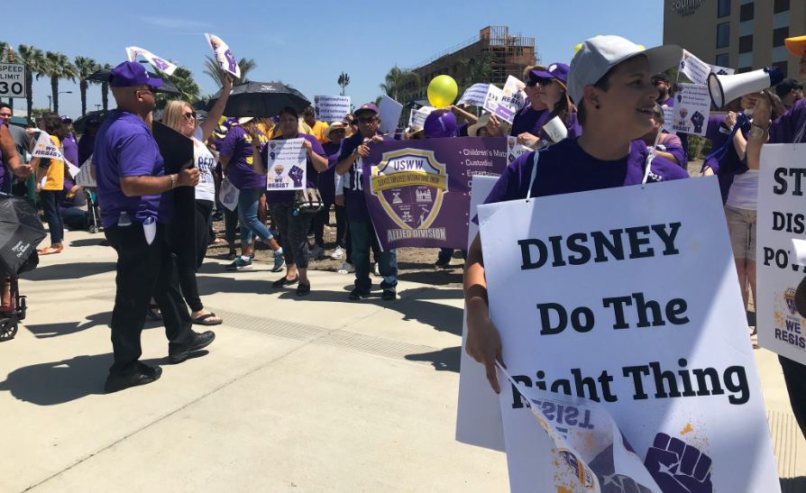 Manifestación de trabajadores de Disneyland por mejores salarios