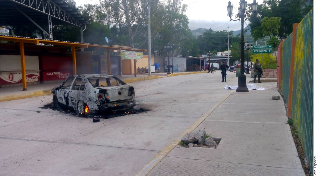 Según el reporte, a las 7:30 horas de este miércoles se recibió información de que frente a las oficinas del DIF municipal y a un costado de la primaria Vicente Guerrero, en la entrada de la localidad, había un vehículo incendiado.