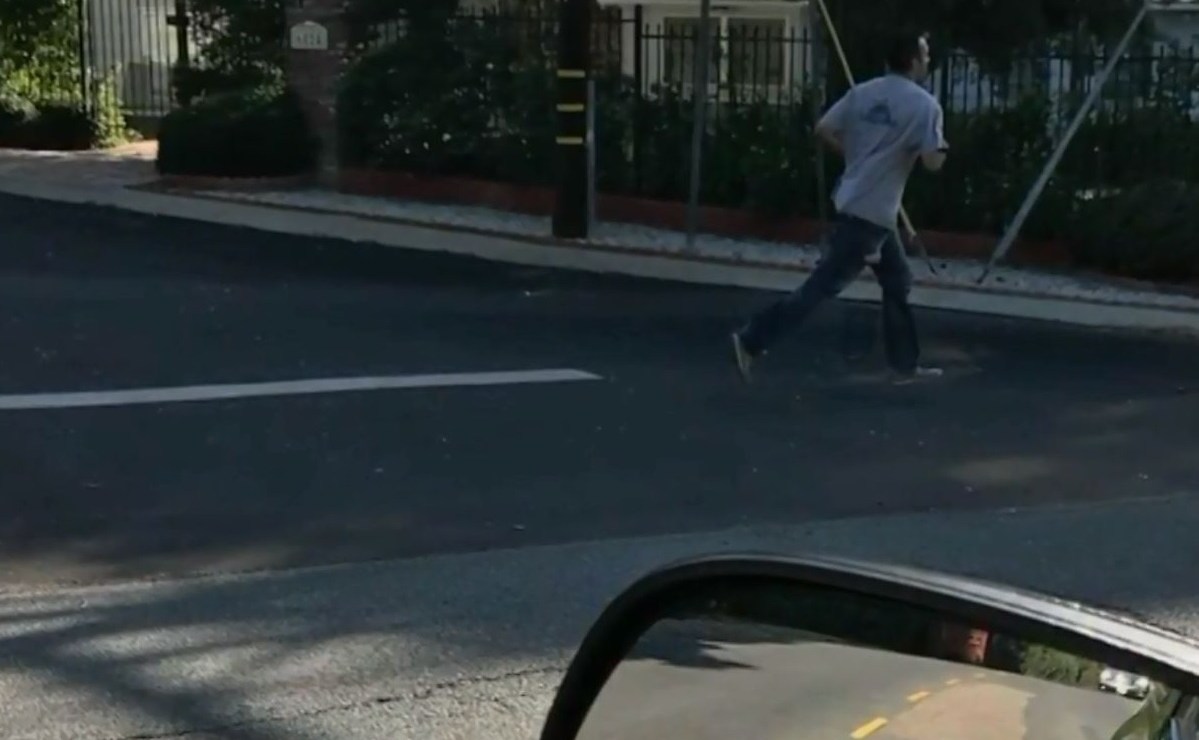 Con su teléfono, la conductora captó al sospechoso, Jacob Marshall, huyendo. Crédito: Captura de Pantalla | KCAL9