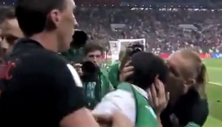 El fotógrafo salvadoreño radicado en México Yuri Cortez cuando es besado por Domagoj Vida.