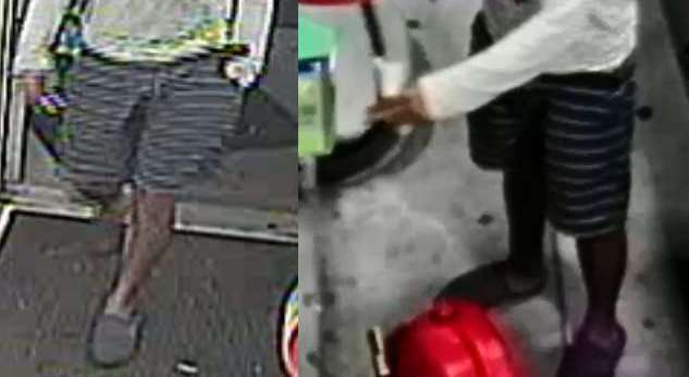 En las capturas, se ve al individuo -en mocacines, camiseta blanca y pantalón cortos de rayas- cuando agarra la manguera y rocía gasolina alrededor del concreto cerca de la pompa.