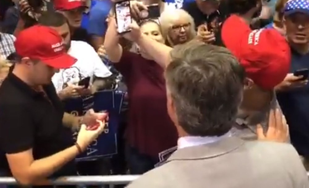 Just a sample of the sad scene we faced at the Trump rally in Tampa. I’m very worried that the hostility whipped up by Trump and some in conservative media will result in somebody getting hurt. We should not treat our fellow Americans this way. The press is not the enemy. pic.twitter.com/IhSRw5Ui3R