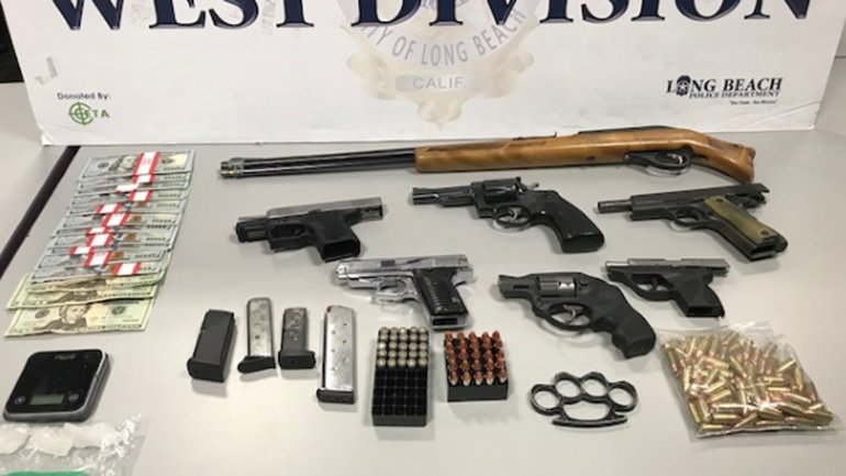 Seis arrestados e incautación de armas, droga y $6,000 en operación contra pandillas en Long Beach