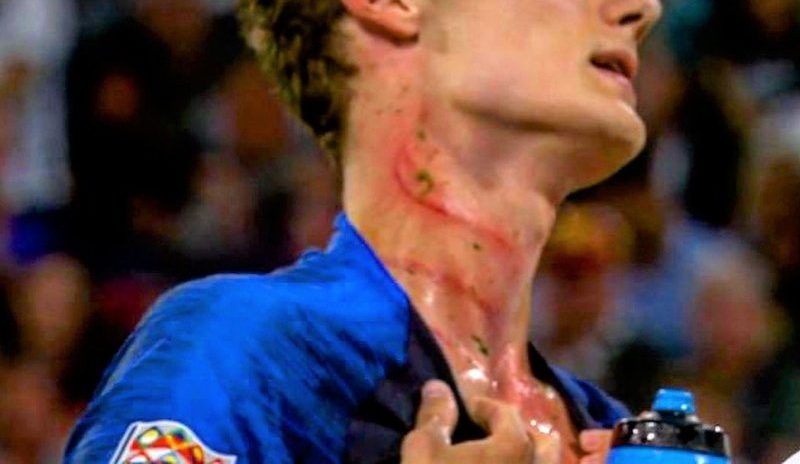 El francés Benjamin Pavard buscaba barriéndose un balón en la línea de meta cuando Rudiger, jugador del Chelsea inglés, le pasó el zapato izquierdo por el cuello hasta en dos ocasiones cargándole todo su peso. El autor del mejor gol del Mundial Rusia 2018 se llevaba las manos a la garganta lleno de dolor, que pronto revelaría a las cámaras en forma de ‘zarpazos de pantera’.