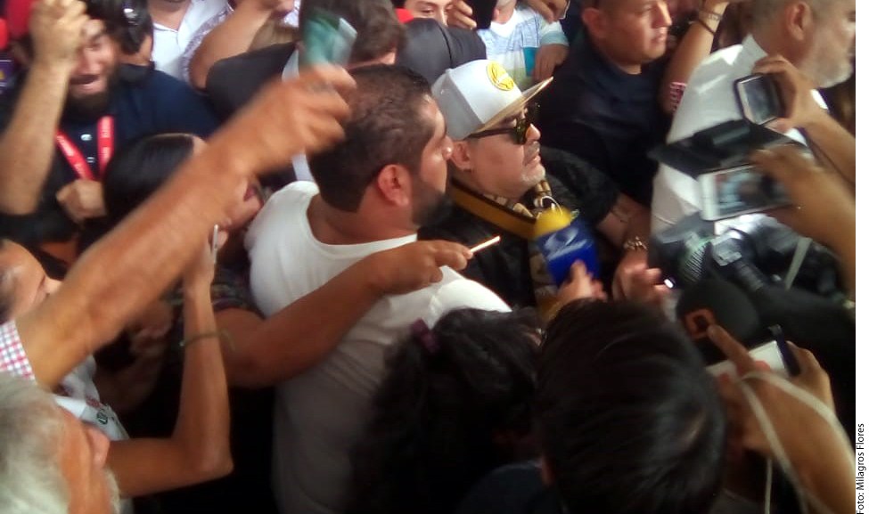 Diego Armando Maradona fue recibido por una multitud en el aeropuerto de Culicán Crédito: Agencia Reforma