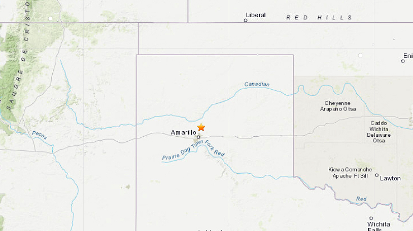 El sismo ocurrió al norte de Amarillo en Texas. Crédito: USGS