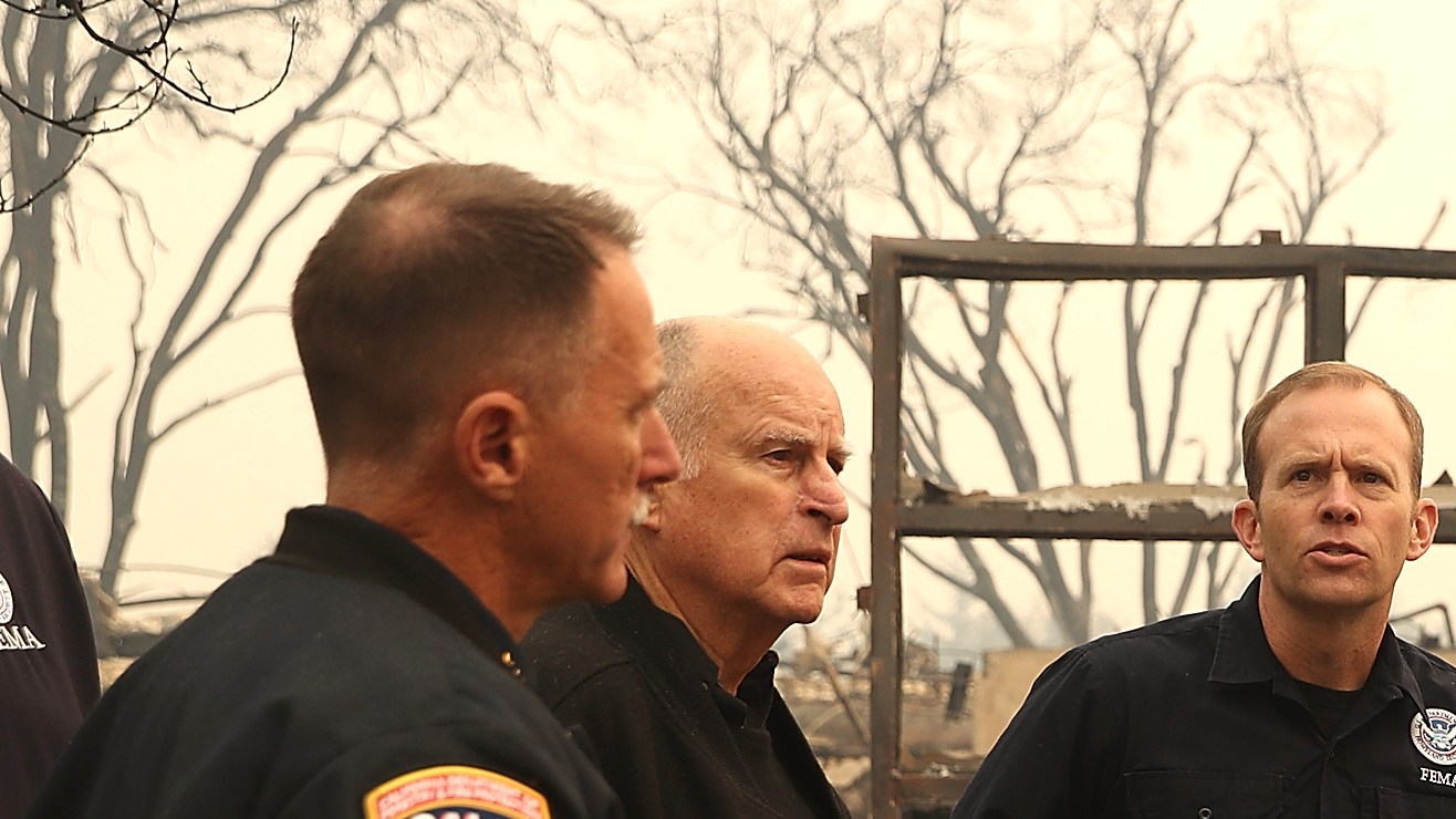 Ryan Zinke y Brock Long visitaron la ciudad de Paradise con el gobernador Jerry Brown. Brown dijo que el cambio climático es la mayor fuente del problema. Brown dijo que habló con Trump el miércoles y que el presidente ha prometido “todos los recursos del gobierno federal”.