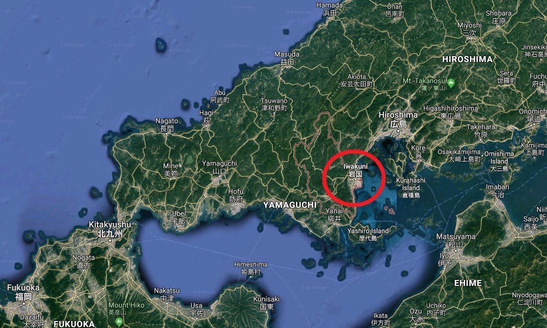 Una de las naves despegó de Iwakuni, en el sur de Japón. Crédito: Google Maps
