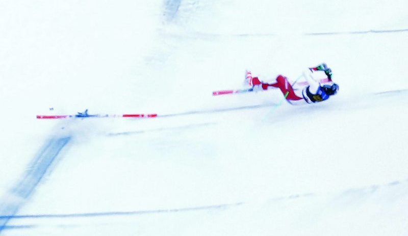 El esquiador suizo Marc Gisin en su lamentable caida durante el FIS Alpine Skiing World Cup en Gardena, Italia. Crédito: ANDREA SOLERO | EFE/EPA