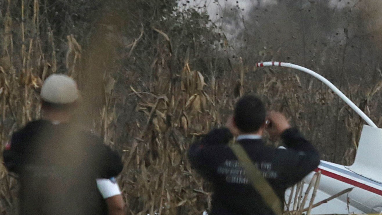Expertos trabajan en torno a los restos de la aeronave. Crédito: EFE/Hilda Rios