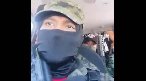 En el clip, cinco hombres en una camioneta con gorras que los identifican como miembros del grupo criminal posan con armas largas al tiempo que amenazan con matar a ladrones y secuestradores y a sus parientes.