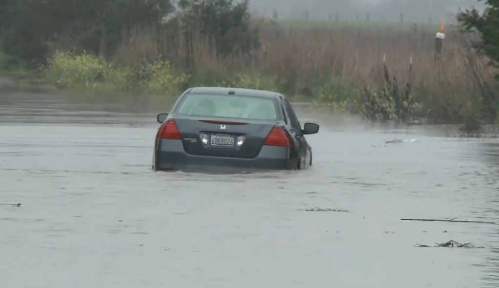 Este video publicado por el medio local KPIX CBS en San Francisco, muestra como una persona tuvo que llamar a los rescatistas para salvarla después de entrar deliberadamente en una zona claramente inundada.