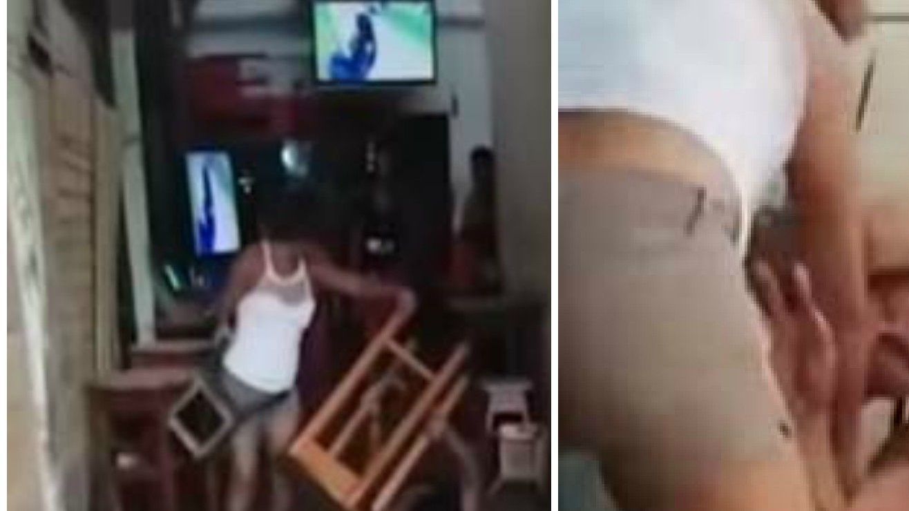 En las imágenes que circulan del ataque, se ve a la esposa rabiosa en el interior del negocio mientras la emprende contra su pareja con todo lo que encuentra a su paso, incluyendo mesas y asientos.