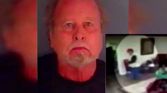 A Donald Light Jr., de 79 años, cuya esposa participa en la política local del Partido Republicano, se le ve acercándose a una pila de abrigos y bolsos, deslizar un bolso y ponerlo en su sombrero rojo de MAGA.